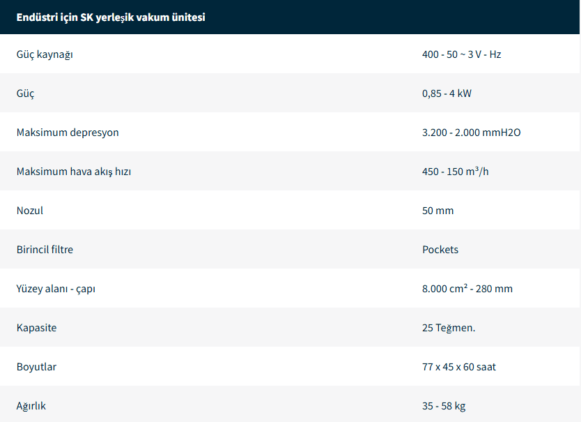 Küçük boyutuyla ünlü olan SK serisi, iş istasyonlarına veya üretim iş istasyonlarına yakın kurulur ve ince işleme tozunun ortadan kaldırılmasını sağlar, böylece en iyi üretim koşullarında bitmiş bir ürün elde edilir.