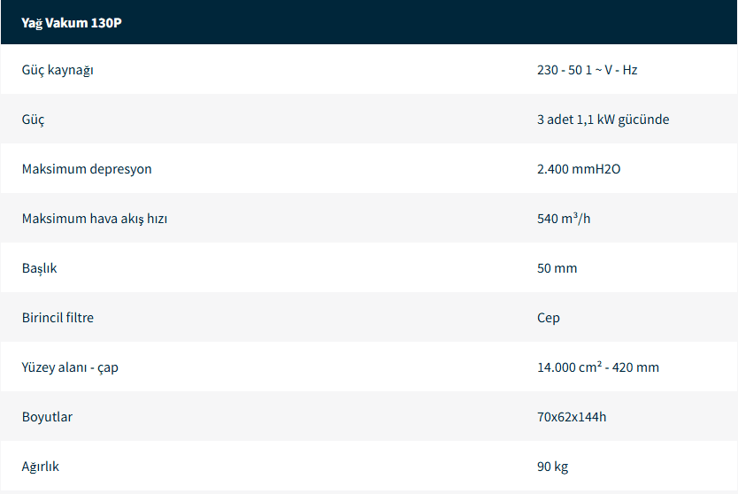 Yağ, Talaş, Çapak Vakum Makineleri Yağ Vakum 130P